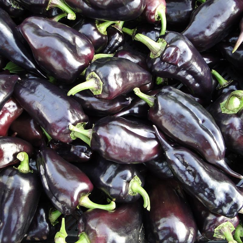 Die frühreifenden Früchte sind länglich-blockig, glatt und mittelgroß. Diese verfärben sich außen von dunkelgrün auf schokoladenbraun, während das Fruchtfleisch innen weinrot ist. Paprika mit süß-fruchtigem, leicht rauchigem Aroma.